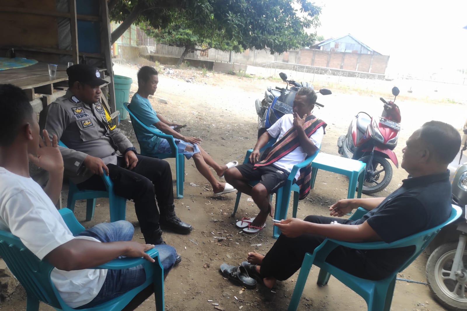 Bripka Syarayat Surya Rahmat selaku bhabinkamtibmas Desa Renda duduk bersama warga binaan dan sampaikan himbauan Kamtibmas bertajuk sambang Kamtibmas humanis.