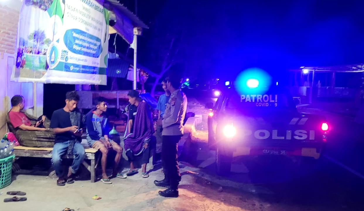 Personel Polsek Soromandi Polres Bima Polda NTB memantau kegiatan masyarakat melakukan komunikasi dan koordinasi dalam patroli Cipta Kondisi (Cipkon). Sabtu malam (29/11/25).