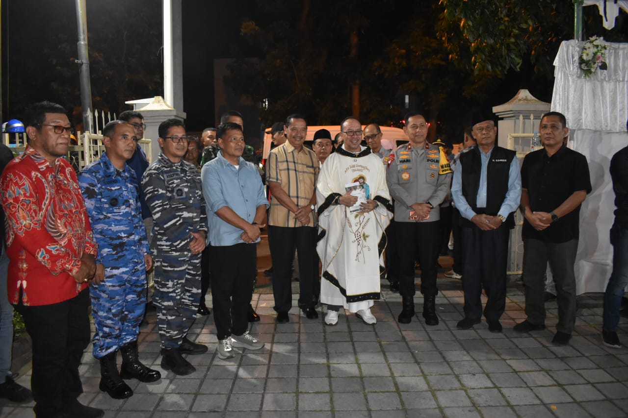Mataram, NTB – Wakapolda NTB Hari Nugroho bersama unsur Forkopimda Provinsi NTB melakukan kunjungan ke sejumlah gereja di wilayah Kota Mataram, Rabu malam (24/12/2025). Kunjungan ini dilakukan untuk memastikan rangkaian ibadah Malam Natal 2025 berlangsung aman, tertib, dan penuh khidmat.